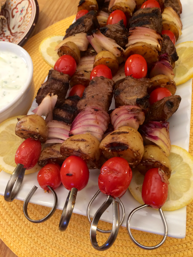 I served mine up with some whole grain pita bread alongside a bean and carrot salad (a post with that recipe coming up soon). The beef was succulent and full of flavor! The yoghurt sauce helped mellow out the heat from the chili I added to the beef. This was an easy, healthy and delicious meal that got enthusiastic two thumbs up from across my meza (table). Now that the weather's finally warming up, it's time to fire up those grills and whip up this delicious recipe. Happy cooking!