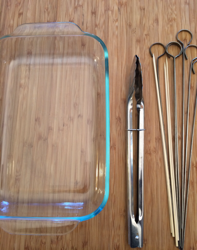 NOTE: If you'll be using wooden skewers to cook your kebabs as opposed to metal skewers, soak them for at least 30minutes, completely submerged in a deep dish of water. This will help prevent them from burning as you cook (if you're using a fire grill).